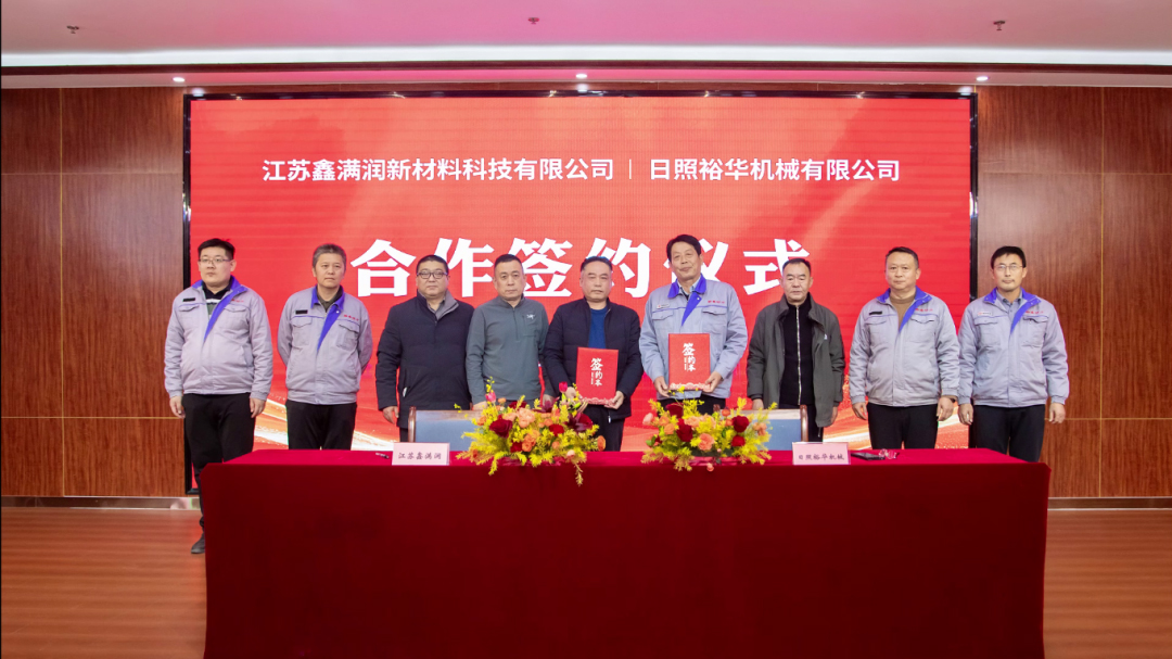 出席簽約儀式的有:江蘇鑫滿潤董事長李新波,董事王杰、王勝德,總經(jīng)理何勝軍;日照裕鑫動力有限公司董事長張彥濤,裕華機械總經(jīng)理范濤,裕華機械副總經(jīng)理、銷售公司總經(jīng)理葛樹廠,品特裕華紡織科技副總經(jīng)理張永龍等。